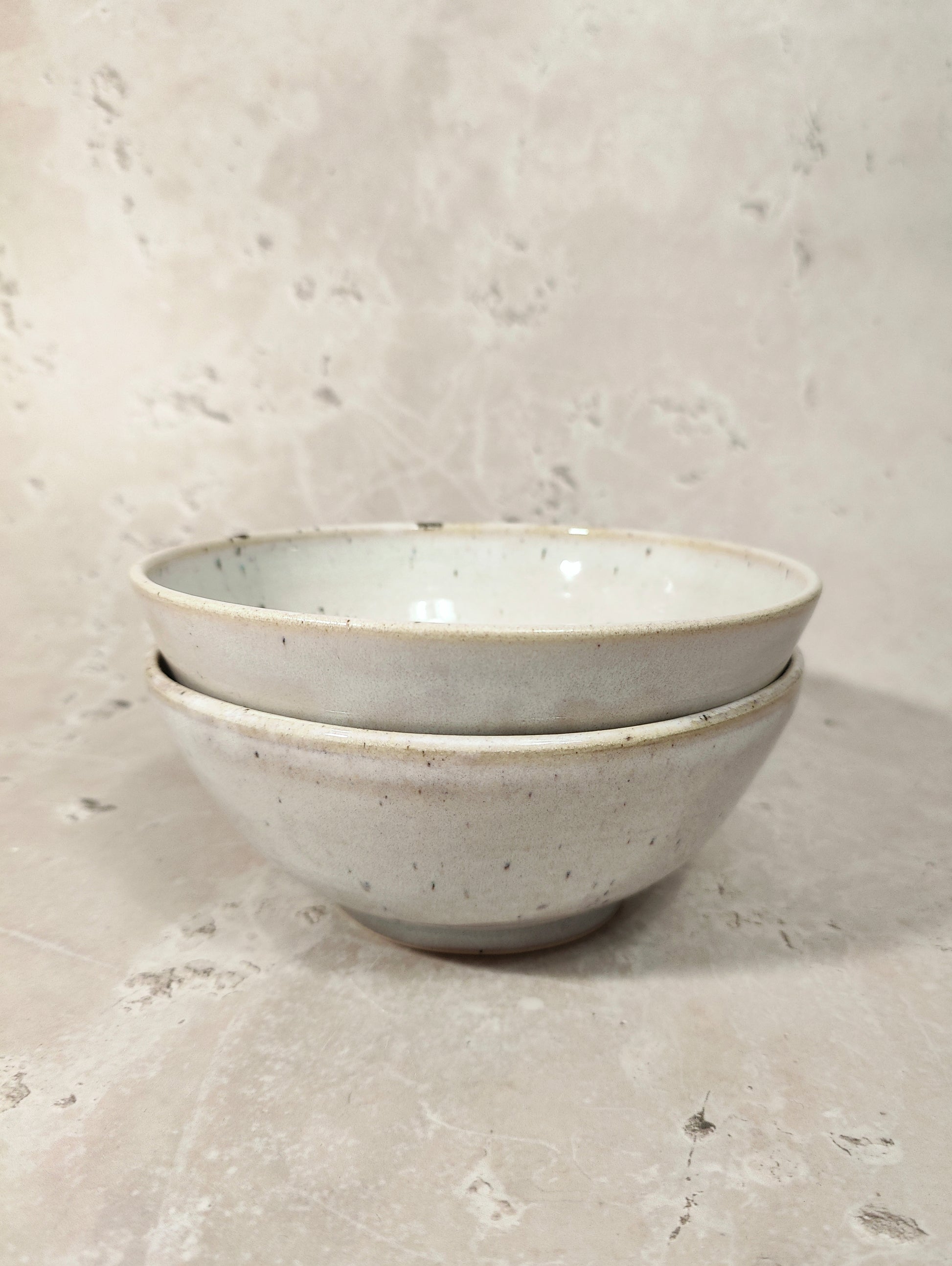 Thrown on the wheel and decorated with a splatter of iron oxide.